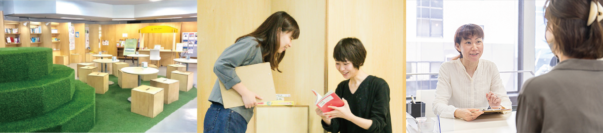 【求職者サポート】 キャリアカウンセリングを通して、一人ひとりに合わせた就職活動の進め方をアドバイスしています。また、セミナー等により就職や働くために必要な力を身につける機会を提供するほか、企業と求職者の交流会や合同企業説明会を開催し、企業との出会いをサポートしています。